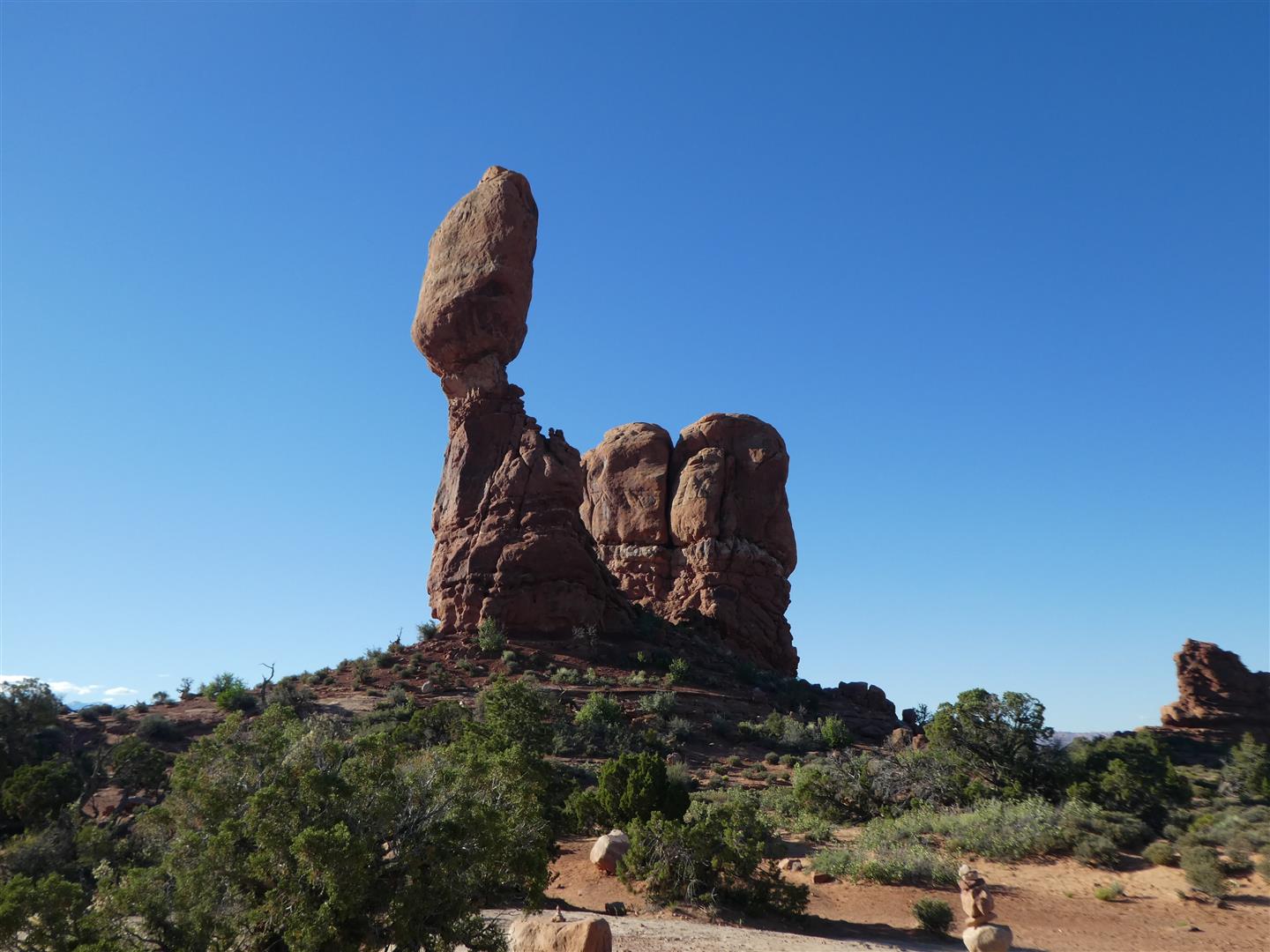 The total height of Balanced Rock is 128 feet (39 m), with the balancing rock rising 55 feet (16.75 m) above the base. This rock is the largest of its kind in the park.