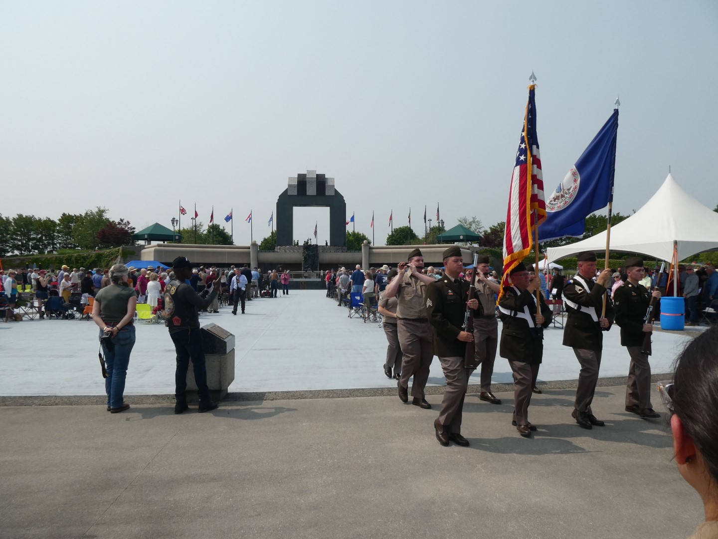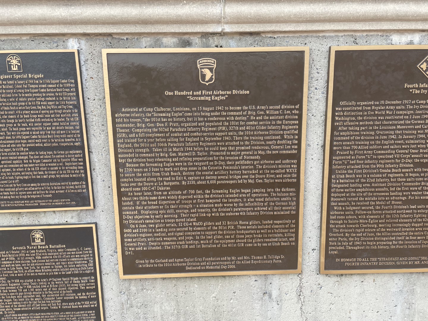 The third Square Estes Plaza, celebrates the victory and includes the Overlord Arch and the twelve flags of the Allied nations that served in the Allied Expeditionary Force.