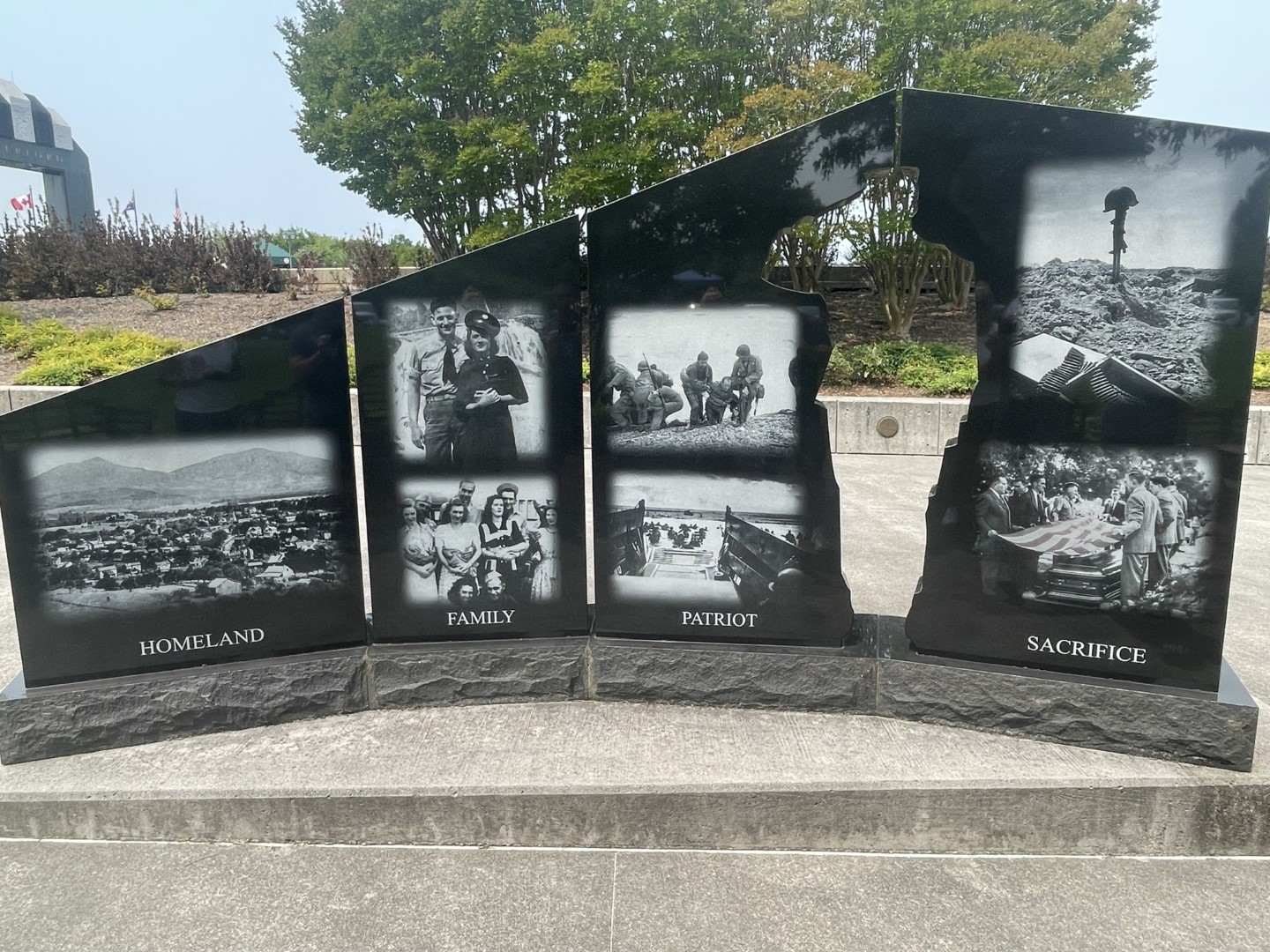 According to the National D-Day Memorial Foundation, the monument is a series of three different squares that follow a timeline.