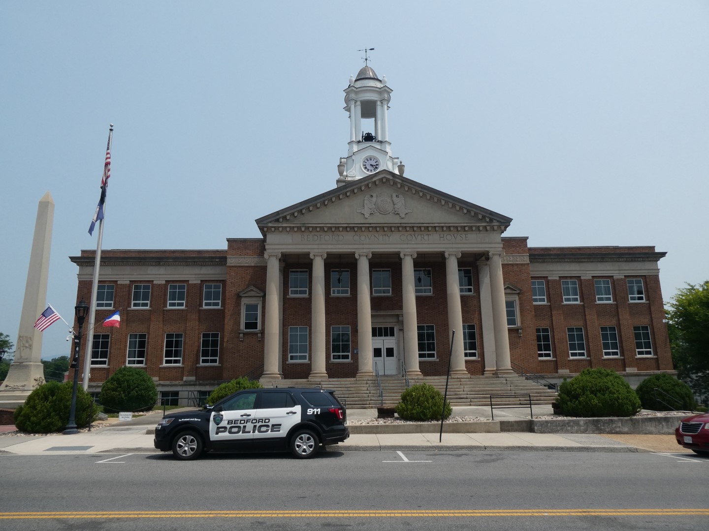 The Colonial Courthouse was built in 1930 and is the most monumental building in Bedford.