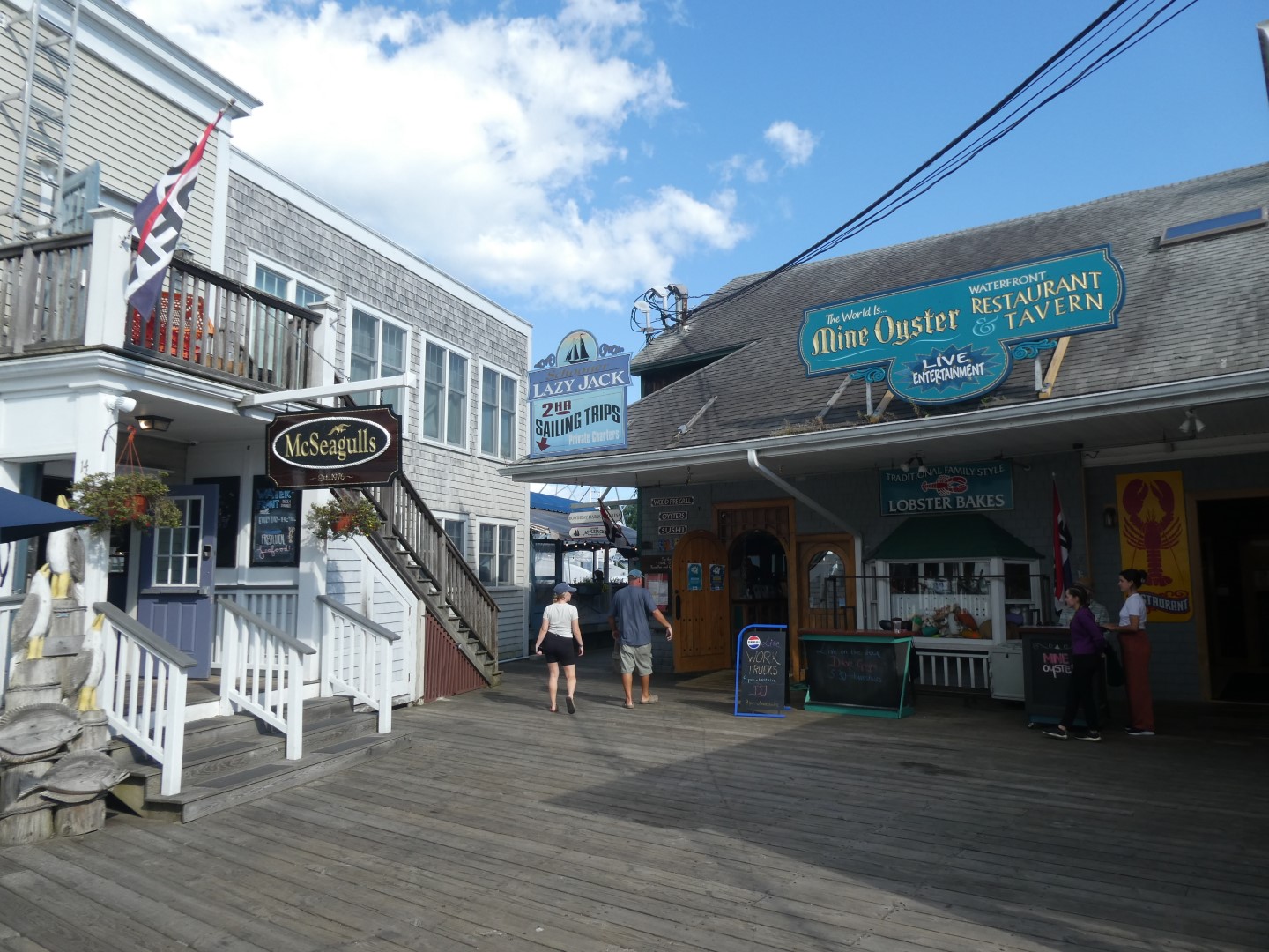 In Boothbay Harbor staan aan de waterkant tot restaurants omgebouwde voormalige pakhuizen op palen in het water (zie film).