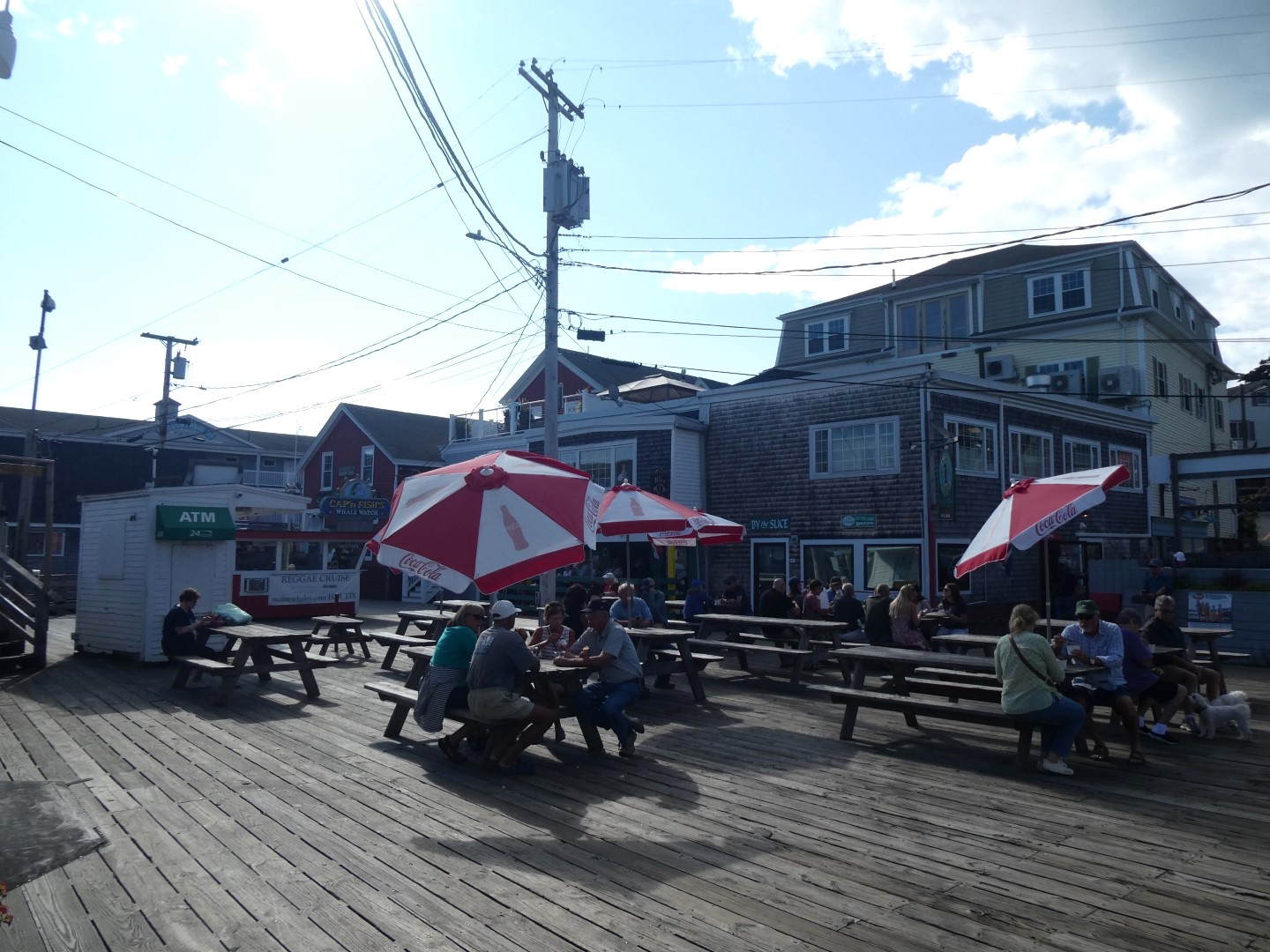 Ongeveer 5 minuten lopen vanaf het motel ligt het Boothbay Lobster Wharf waar je verse kreeft en vis kunt eten. Dit is een populaire bestemming omdat hier ook geregeld live music wordt gespeeld tijdens het zomerseizoen. Uitzicht op Boothbay Lobster Wharf en zonsondergang vanaf het motel (zie film).