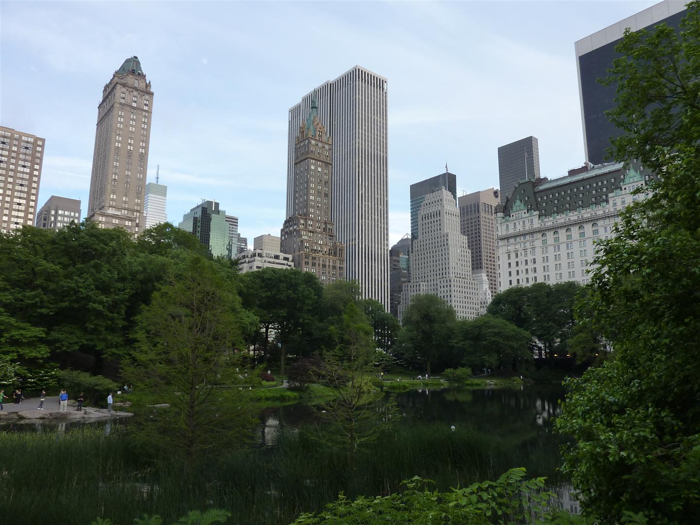 Central park werd in 1851 ontworpen door Frederick Law Olmested en Calvert Vaux. Het park telt 340 ha aan bossen, tuinen, speelweiden en een dierentuin. Je kunt er vogels bekijken, fietsen, roeien, schaatsen, skaten, wandelen en joggen langs de 95 km aan paden. Vanaf Central Park South (59th street) aan de zuidzijde en 110th street aan de noordzijde kun je op diverse plaatsen het park in. (Uitzicht vanaf Central Park op de skyline van New York).
