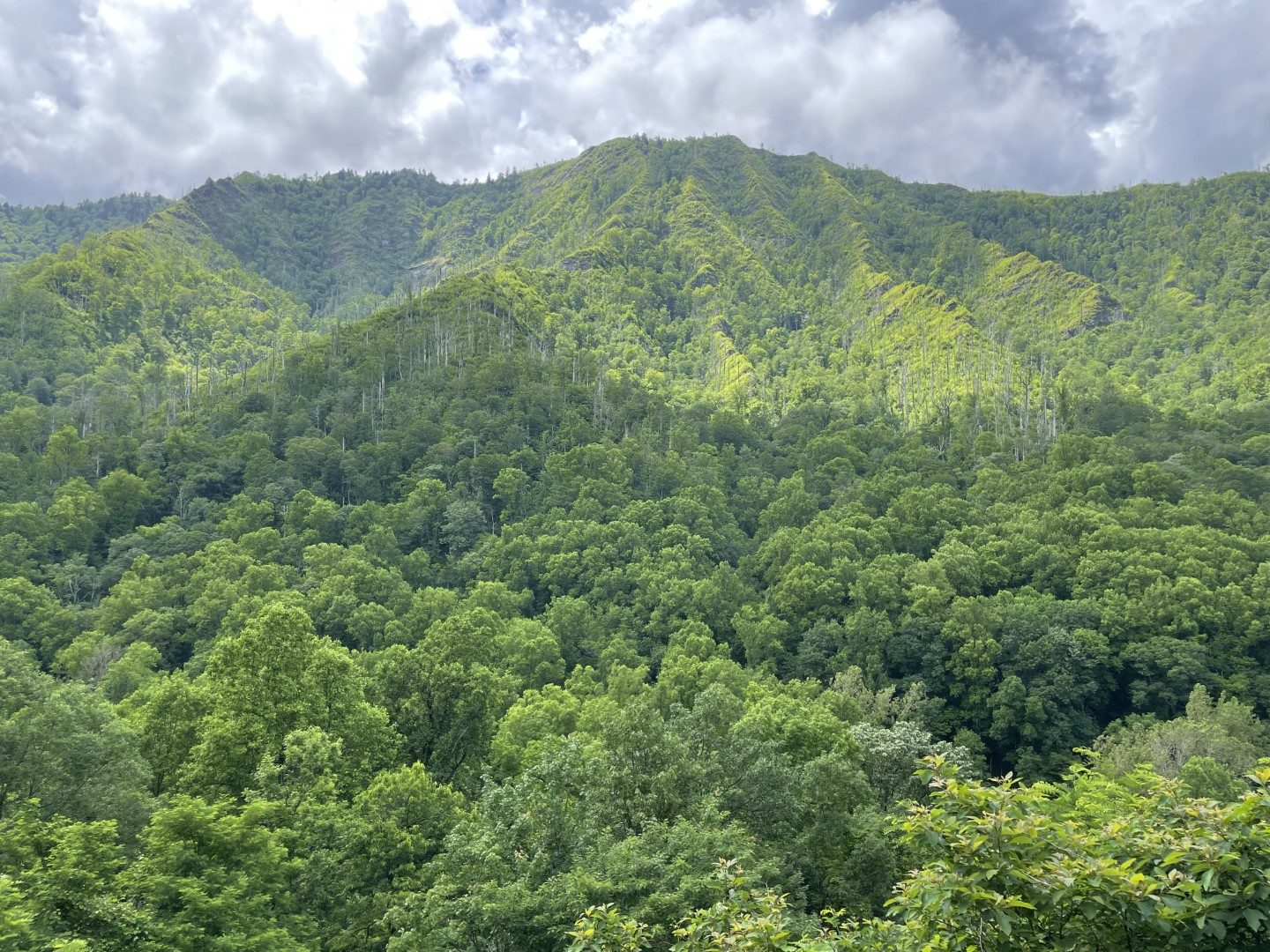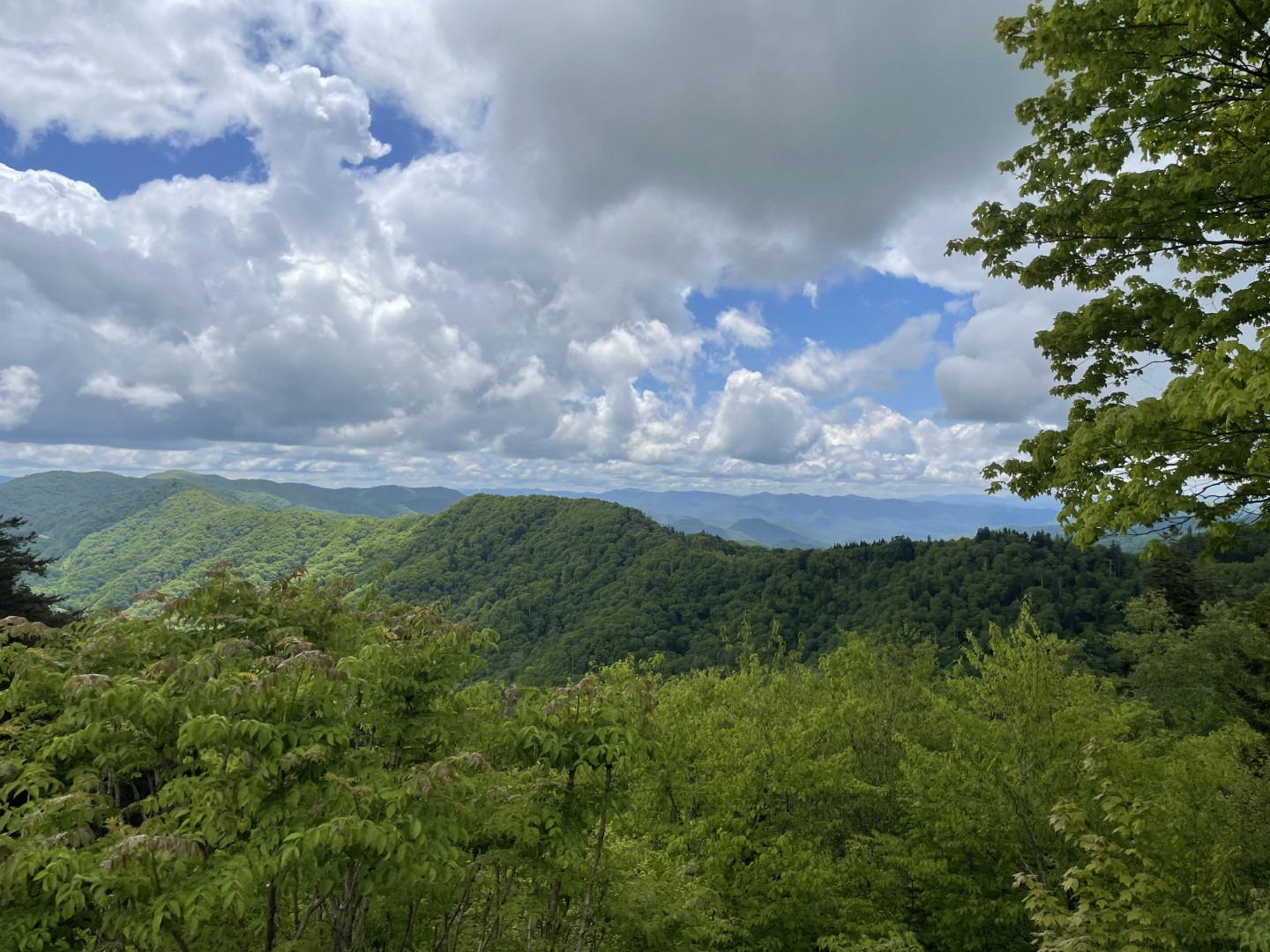 5) Newfound Gap: Neem vanaf het Sugerlands Visitor Center de US Highway 441 en volg het bord Newfound Cap / Cherokee. De US Highway 441 doorsnijdt het park van noord naar zuid en verbindt de steden Gatlinburg en Cherokee (North Carolina) met elkaar. Deze 50 km lange toeristische route begint op geringe hoogte, stijgt geleidelijk naar de kam van de Smokies en passeert die via de Newfound Gap. Éénmaal aangekomen kun je de auto parkeren op een groot parkeerplaats (Let wel op in het hoogseizoen kan het druk zijn) en genieten van het prachtige uitzicht op Mount LeConte en Newfound Gap. Tip: neem warme kleding mee want de temperaturen zijn lager dan in het dal.