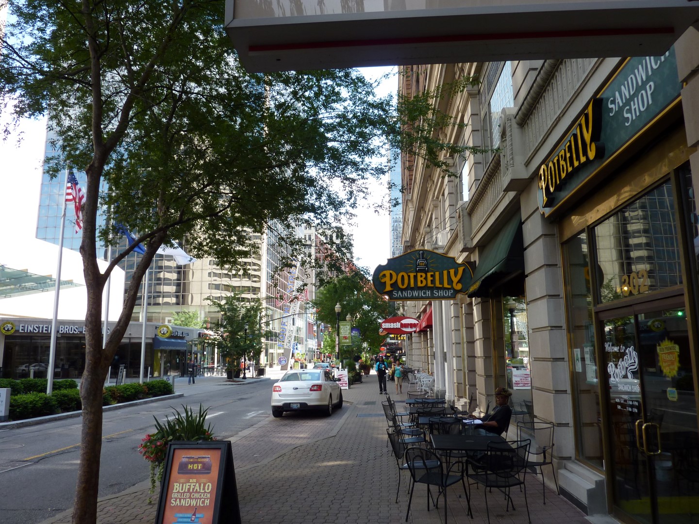 De trolleys die rijden op Fourth, Main en Markt Streets zijn gratis.