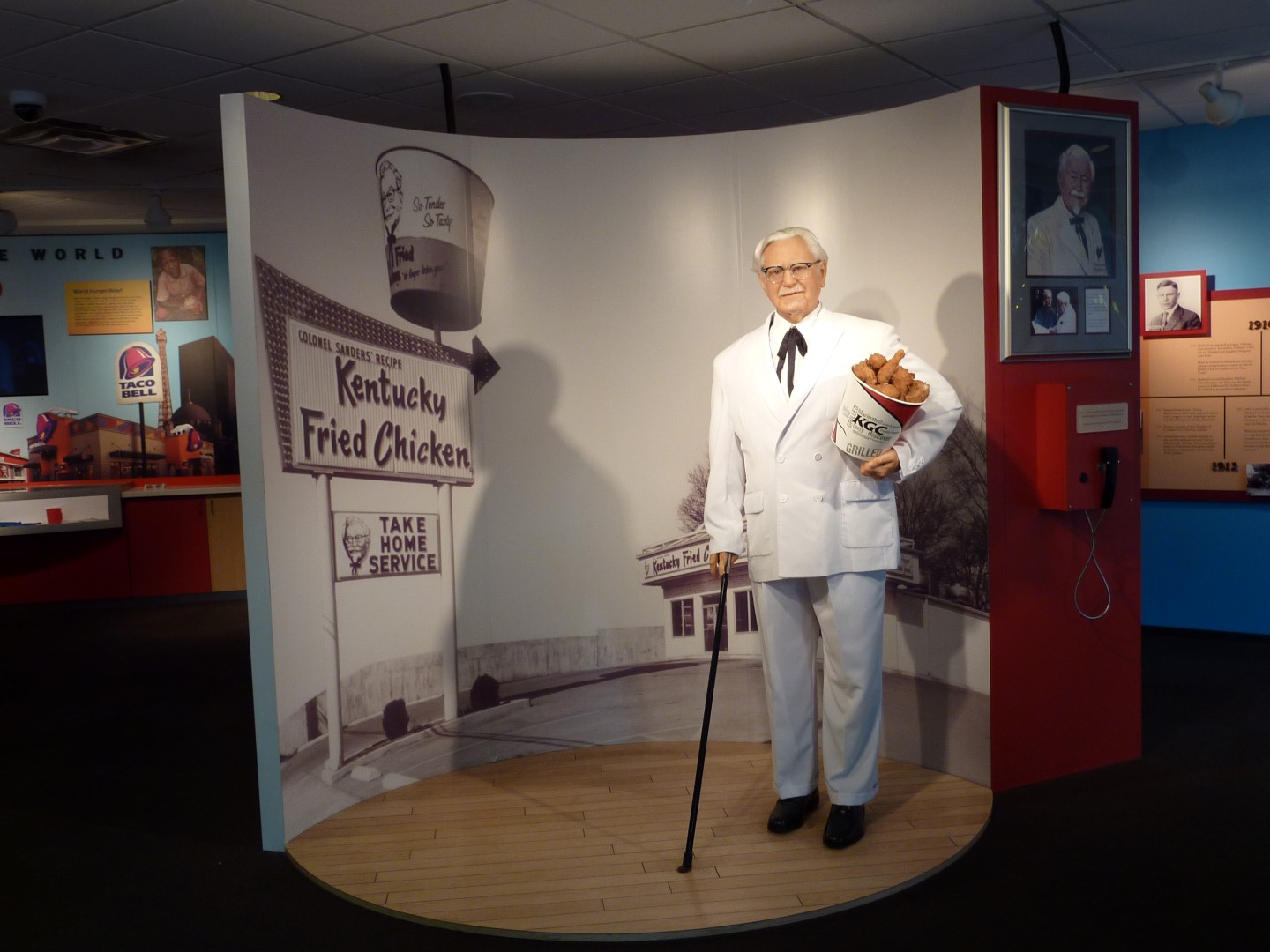 Around the corner of Fourth Street Live you will find the visitors center. Here you can find all information about the city of Louisville. You will also find information about Kentucky Fried Chicken, KFC was founded by Harland Sanders, an entrepreneur who began selling fried chicken from his roadside restaurant in Corbin in Kentucky, during the Great Depression.