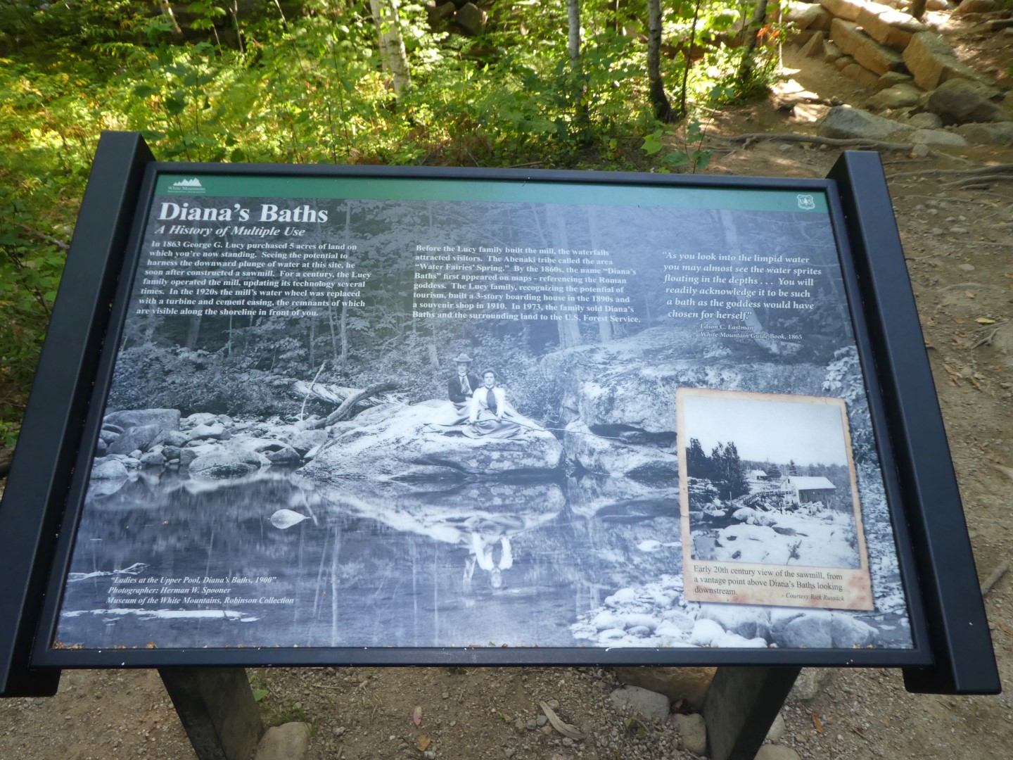 The Abenaki tribe called the area "Water Fairies Spring". By the 1860s the name "Diana's Bath" first appeared on maps - referencing the Roman goddess. The Lucy Family, recognizing the potential of tourism, built a 3-story boarding house in the 1890s and a souvenir shop in 1910. In 1973, the family sold Diana's Bath's and the surrounding land to the U.S. Forest Service.