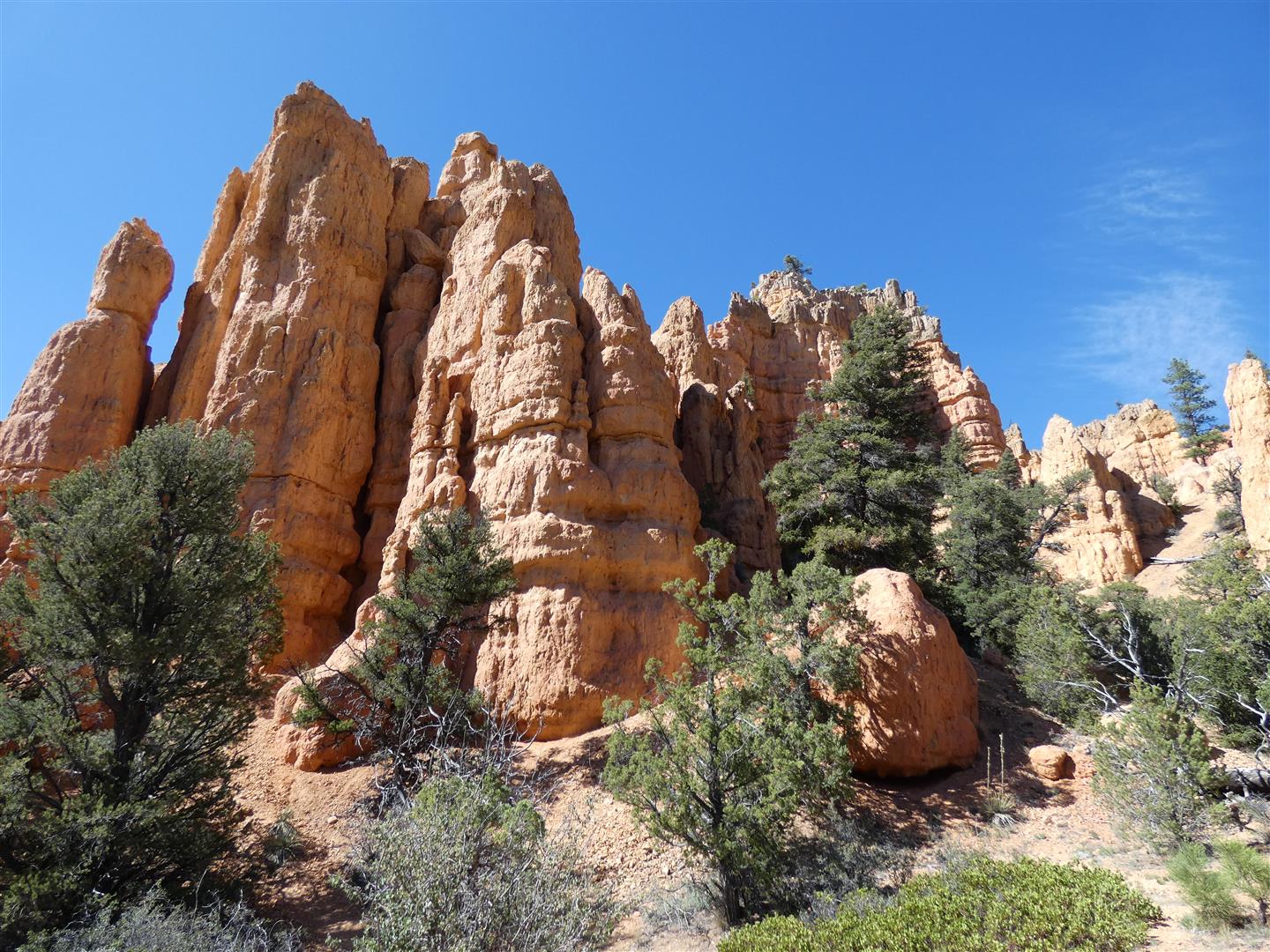 1) Red Canyon: About 9 miles southwest of Panquitch (via Routes 80 and 12) lies Red Canyon. Not as beautiful as Bryce Canyon but well worth it. Here you will also find beautiful red sandstone hoodoos and you can walk beautiful trails. Red Rock is a bit quieter than Bryce Canyon but there is more noise from the traffic at Route 12. The Visitor Center is open from the end of may to the beginning of September daily from 09.00 to 18.00, outside the high season it is open from Friday to Monday. The trails are open all year round and there is no fee to enter Red Canyon.