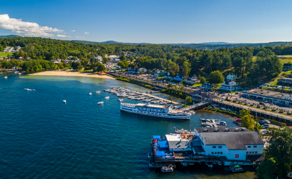 De belangrijkste zomerhaven van de MS Mount Washington van de Winnipesaukee Flagship Company ligt aan de boulevard en vertrekt meerdere keren per dag gedurende zomer.