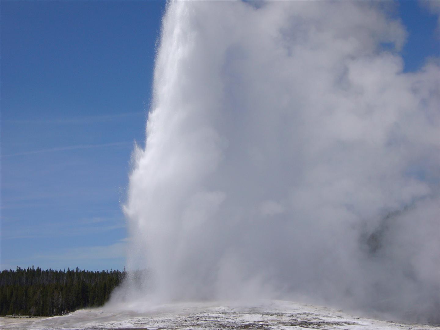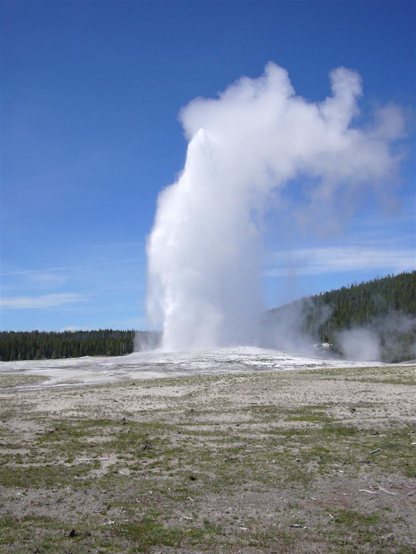 De befaamde Old Faithful is een van de grote trekpleisters van het park, niet zozeer omdat hij de hoogste straal heet water omhoogspuit, als wel omdat hij (de naam zegt het al) trouw om de 74 minuten begint te werken, waarbij de straal van 30 tot 55 m hoogte gedurende vier en een half minuut liefst 32.000 liter heet water produceert.