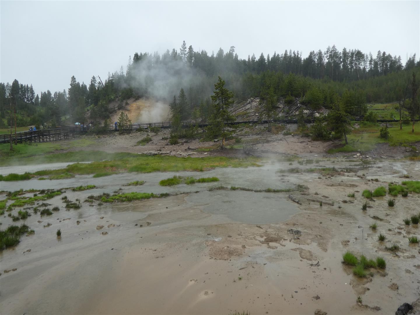You can hike a short (less than a quarter mile long) boardwalk to see Dragon's Mouth Spring and what remains of Mud Volcano.