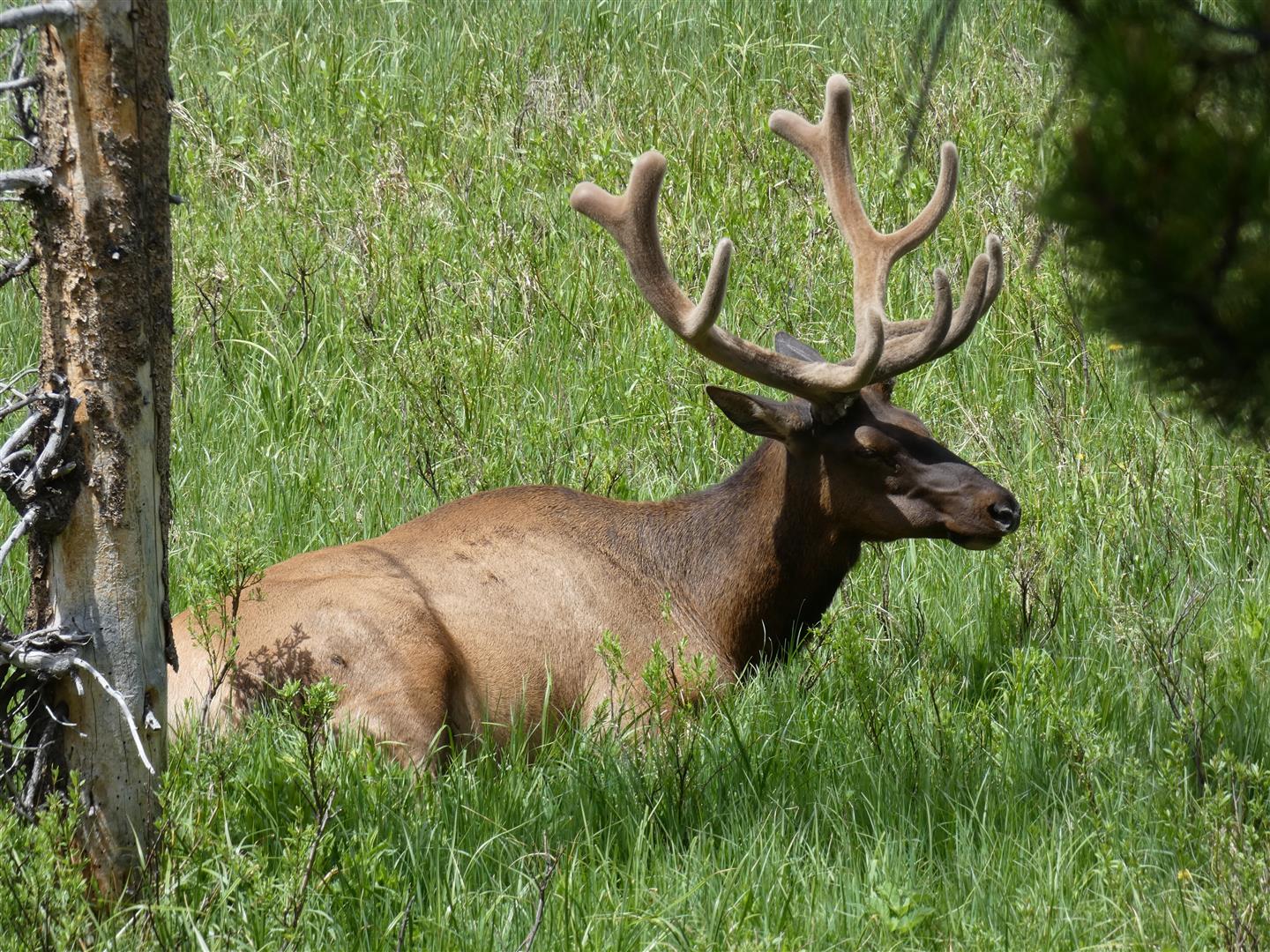 Tijdens de wandeling zag ik twee prachtige elken, een mannetje en vrouwtje, in het gras liggen. De elk of te wel de wapitihert zijn de meest voorkomende grote zoogdieren in Yellowstone National Park.